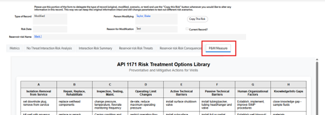 Each risk assessment includes a dedicated P&M Measure tab. Before the assessment is completed, no measures are highlighted. Once the questions are answered and the record is saved, applicable P&M Measures turn red, clearly signaling where action is needed to mitigate risk.